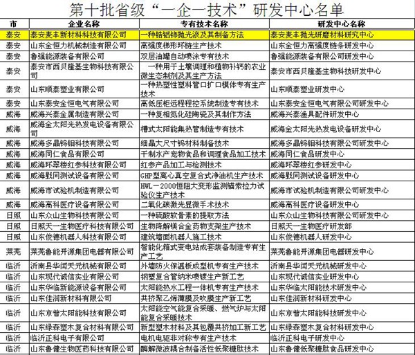 近日,《山東省中小企業(yè)局文件(魯中小企局字[2015]64號(hào))》公布了省級(jí)第十批 “一企一技術(shù)”研發(fā)中心和第八批“一企一技術(shù)”創(chuàng)新企業(yè)名單,泰安麥豐新材料科技有限公司通過市局推薦、省局初審和專家委員會(huì)嚴(yán)格評(píng)審,成功獲評(píng)省級(jí)“一企一技術(shù)”研發(fā)中心。